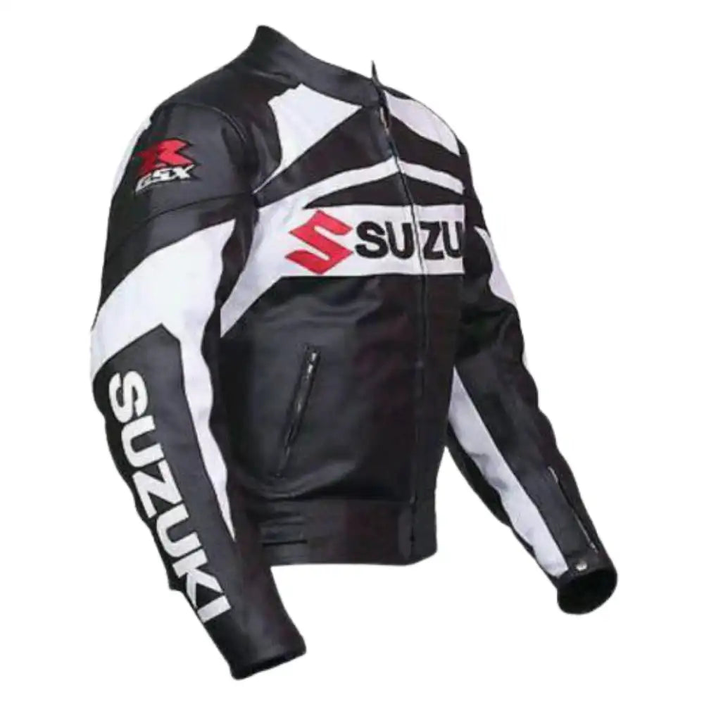 Black & White Armored Suzuki GSXR Leather Motorcycle Jacket