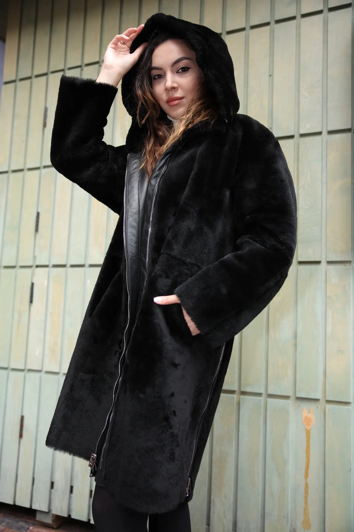 Avalon black oversize Reversible Sheepskin long coat