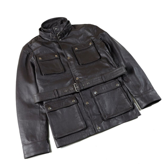 Parker Black Belted leather jacket with large pockets