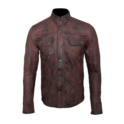 - Hybrid design with characteristics of both a leather shirt and a leather jacket.