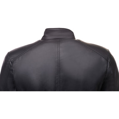 Crafted from high-quality lambskin leather with a smooth matte finish, it’s built for both comfort and durability. The minimalist design, front zip closure, and stand-up collar give it that signature biker edge—perfect for city streets or casual nights out.