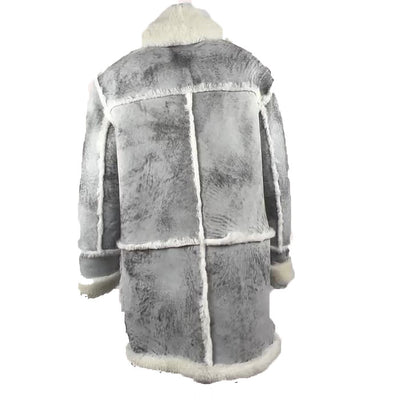 Bret harry distressed grey shearling overcoat