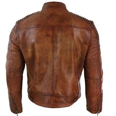 The need to have hands on a jacket is always something important, and with this kind of beauty, how could anyone resist having hands here? This Cafe racer distressed jacket with piping is made of full-grain leather and looks incredible. The front closure is a zip with a stylish round collar, and there are pockets at the front, which add to the jacket's beauty. This jacket is ideal for a variety of casual occasions.