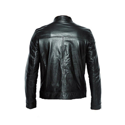For all trendy dudes, we have this amazing Plain black moto style jacket with stripes. It has been made with top-grain leather. A plain black moto style jacket with stripes will enable you to show off a dashing attitude with fantastic style features like zipper closure, round collar, and open hem zipped cuffs adding too much sophistication. Don a stylish ensemble and you'll be the envy of onlookers everywhere.