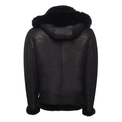 Lucas Black Aviator bomber shearling jacket with Hoodie
