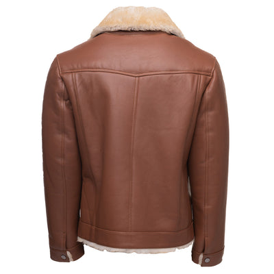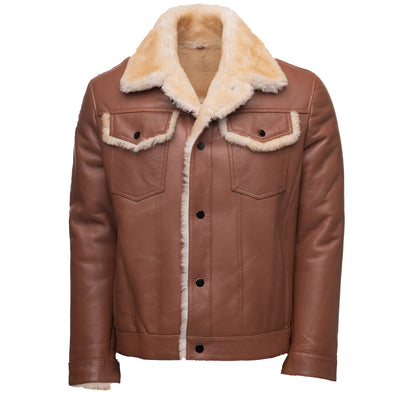 The incredible Mike's western Trucker shearling coat is a die-hard fashionista who rocks every outwear fearlessly by showcasing his versatility and chicness. This shearling coat is absolutely beautiful and sleek. Mike's western Trucker shearling coat is formulated with 100% fine Spanish merino double-faced sheepskin shearling and supported by a 100% sheepskin shearling interior for making it extremely cozy throughout. The jacket has a marvelous button-style front fastening with a lapel-style collar and buttoned cuffs.