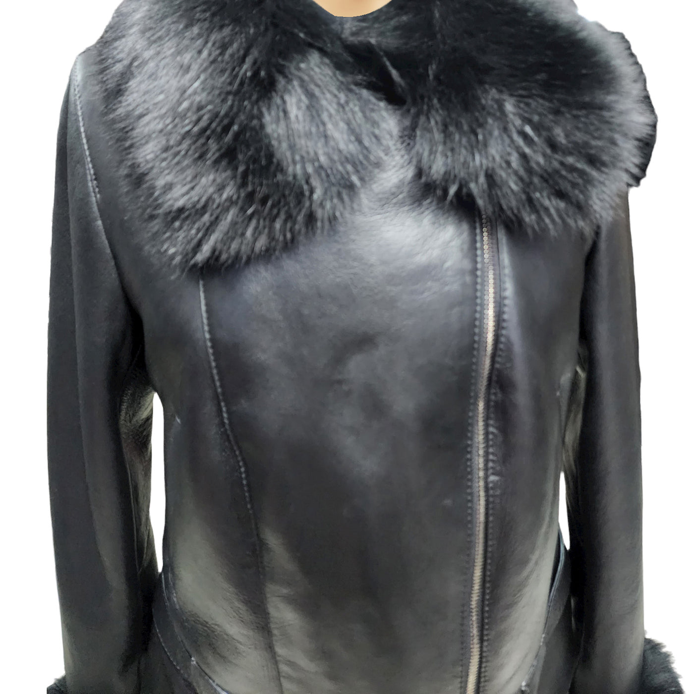 This fall season, come out with the look that will give you an entirely different chic look that can make your appearance iconic by wearing Petra Women's Shearling Coat with Removable Fox Fur Trim. Manufactured with 100% fine Spanish merino double-faced sheepskin shearling which makes it warm and ageless and its 100% sheepskin shearling inner will comfy you as long as you wear it. The strong black color is enough to increase the charm of your persona. The Petra Women's Shearling Coat has been styled by using features like Real Fox Fur on collar lapels, zipper closure, and open hem cuffs. Now win the hearts of your friends and people around you through your chic style just by wearing the Petra Women's Shearling Coat with Removable Fox Fur Trim.