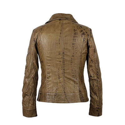 With the Women's Sterling Olive Green Waxed Leather Jacket from our collection, you'll always be on trend. It's made from soft full grain leather, and its olive green color will make you stand out from the crowd. Stylish details such as a notch collar style, open hem cuffs, and zipper closure make it a great choice for your casual look. The perfect fashion statement for any occasion, step out in style.
